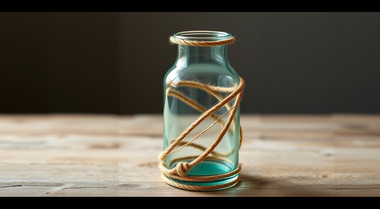 Materials: Glass bottles, jute rope, glue Pro Tip: Vary bottle heights and add dried flowers for a natural centrepiece.